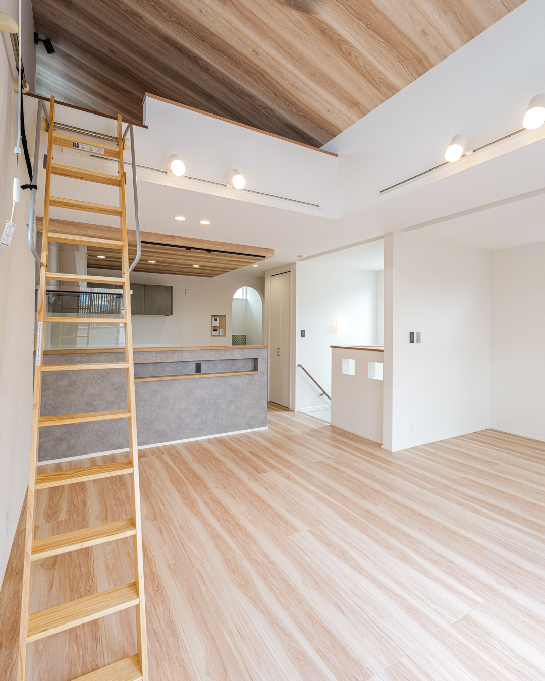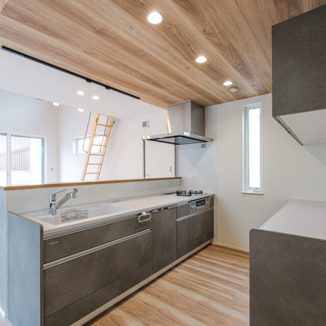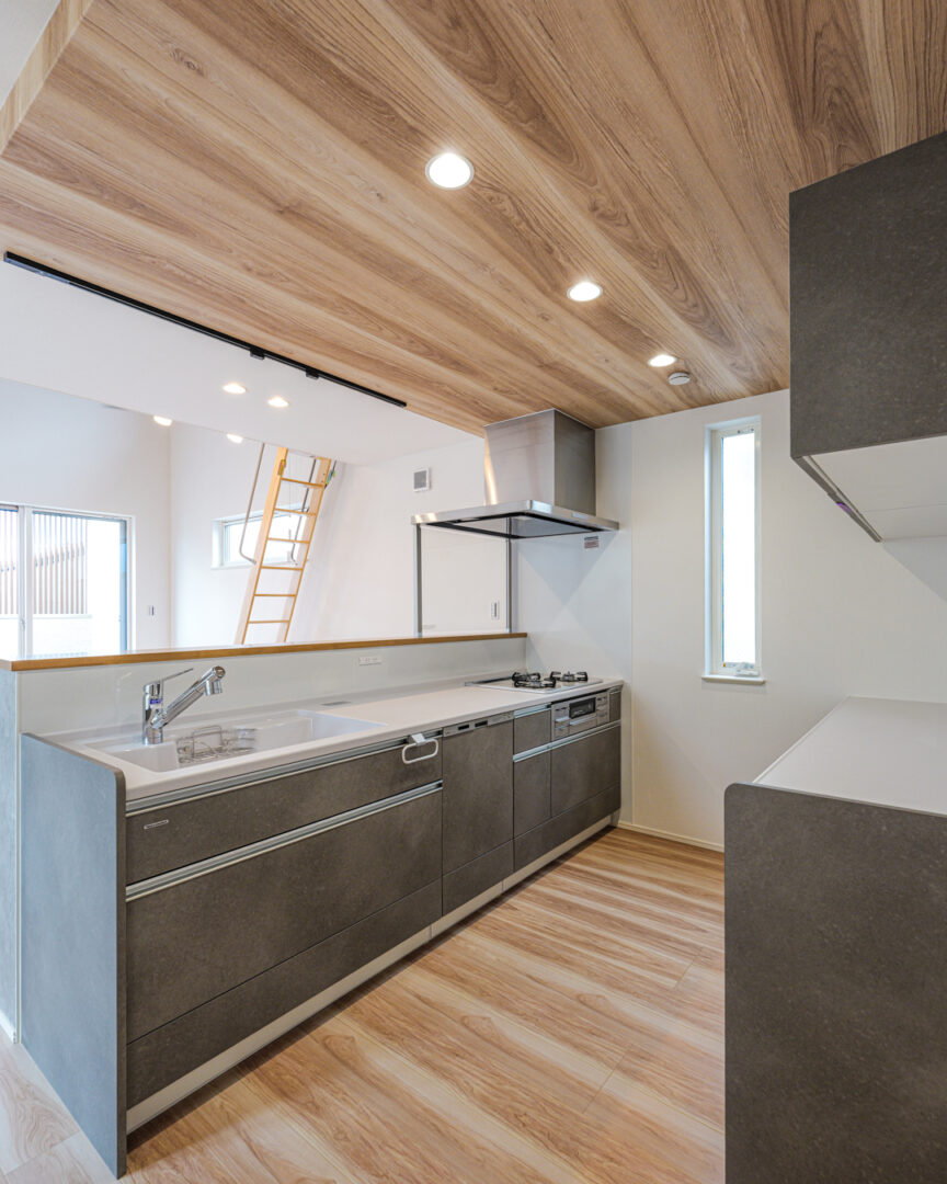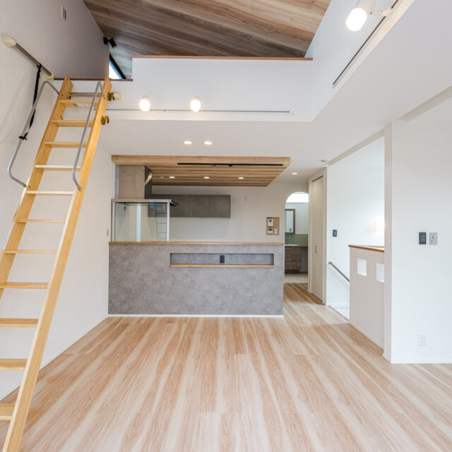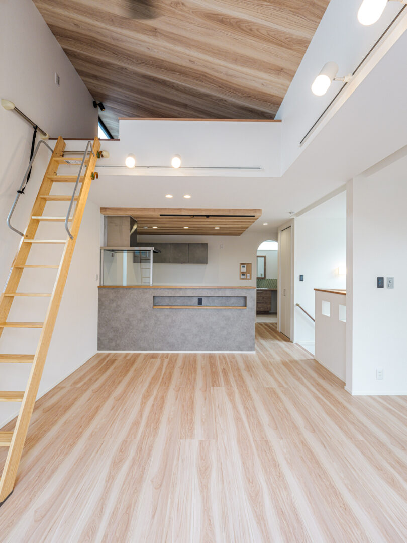 episode 光あふれる20帖の2階リビングを中心に、ロフトや大容量の収納、ナチュラルで温かみのある内装を取り入れたお家。勾配天井と天窓で開放感たっぷりのリビング、秘密基地のように使えるロフト、洗面と脱衣室を分けた使いやすい水回りなど、暮らしやすさの工夫がいっぱい。